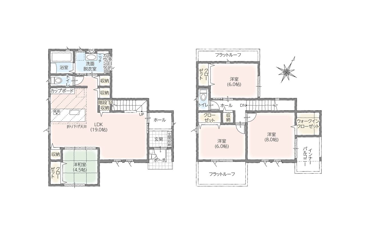 | 詳細間取 | 1階 LDK:19.0帖 和:4.5帖 2階 洋:8帖 洋:6帖 洋:6帖 | 完成年月 | 2026年3月 |